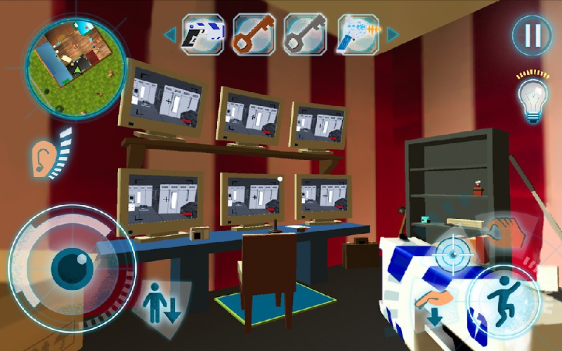 你需要进入邻居家。 你会发现许多陷阱,障碍物,锁和闭门。 不过你得小心翼翼,胜过所有对手,到神秘的地下室,找到很多有趣的东西。