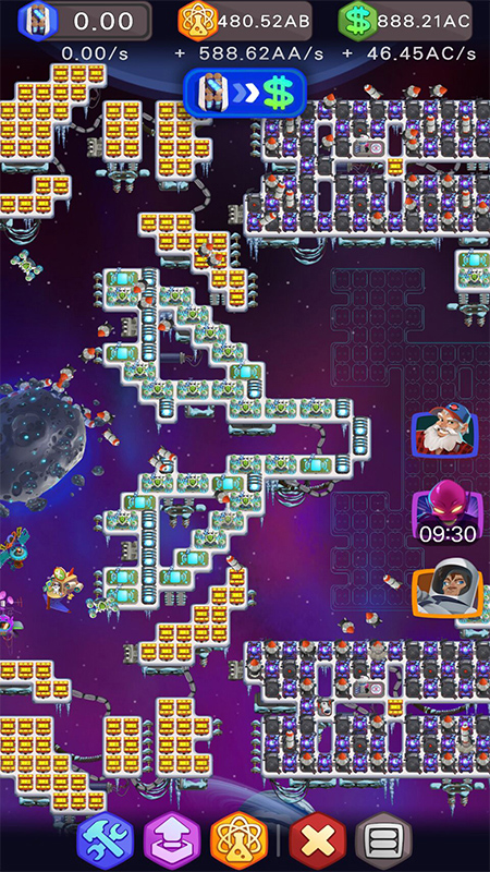 清理废物,创造勘探设施采掘星辰,探索和不断改进技术,并将星辰售出换取财富。