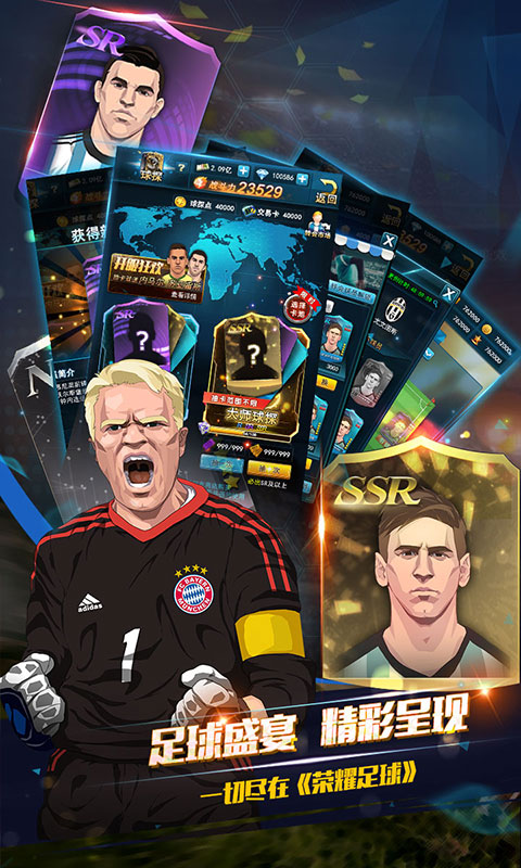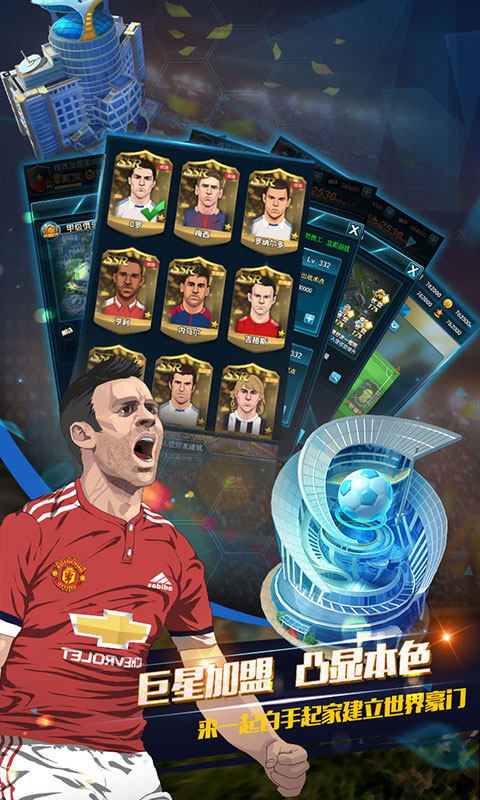 一款卡牌类的汇聚众多足球明星参与比赛的球类游戏,绿茵赛场里,是运动健儿们奋力拼搏的身影,抬脚、顶头,狂奔,相互配合间展现足球竞技的美妙。体育运动的素材,卡牌对战的战斗模式,在放置的操作里与你共同探索足球的魅力。
