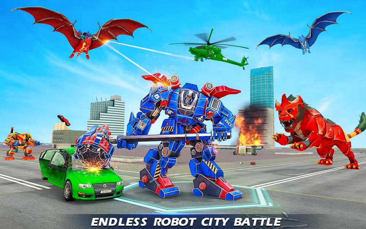想象一下,你的公民感到完全无助,在这个狮子机器人转型游戏中,你扮演一个超级机器人的角色,可以改变成多个机器人来处理这些类型的情况。陆地进入未来的机器人战场,并转化为飞行蝙蝠机器人,以完成所有你的对手的蝙蝠机器人汽车游戏和狮子机器人蝙蝠游戏2020。