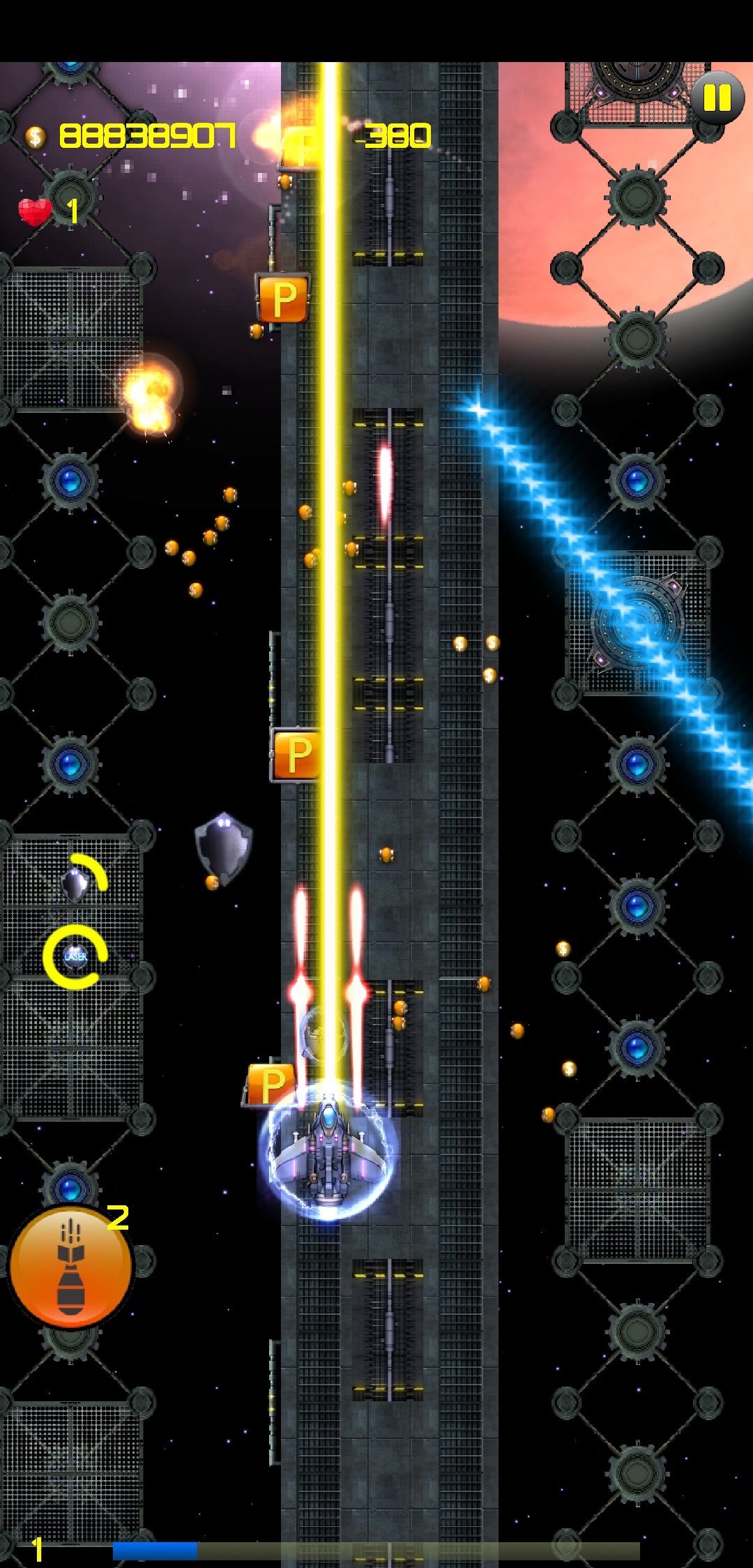 -消灭途中的所有敌人,并为太空飞船收集硬币和道具。