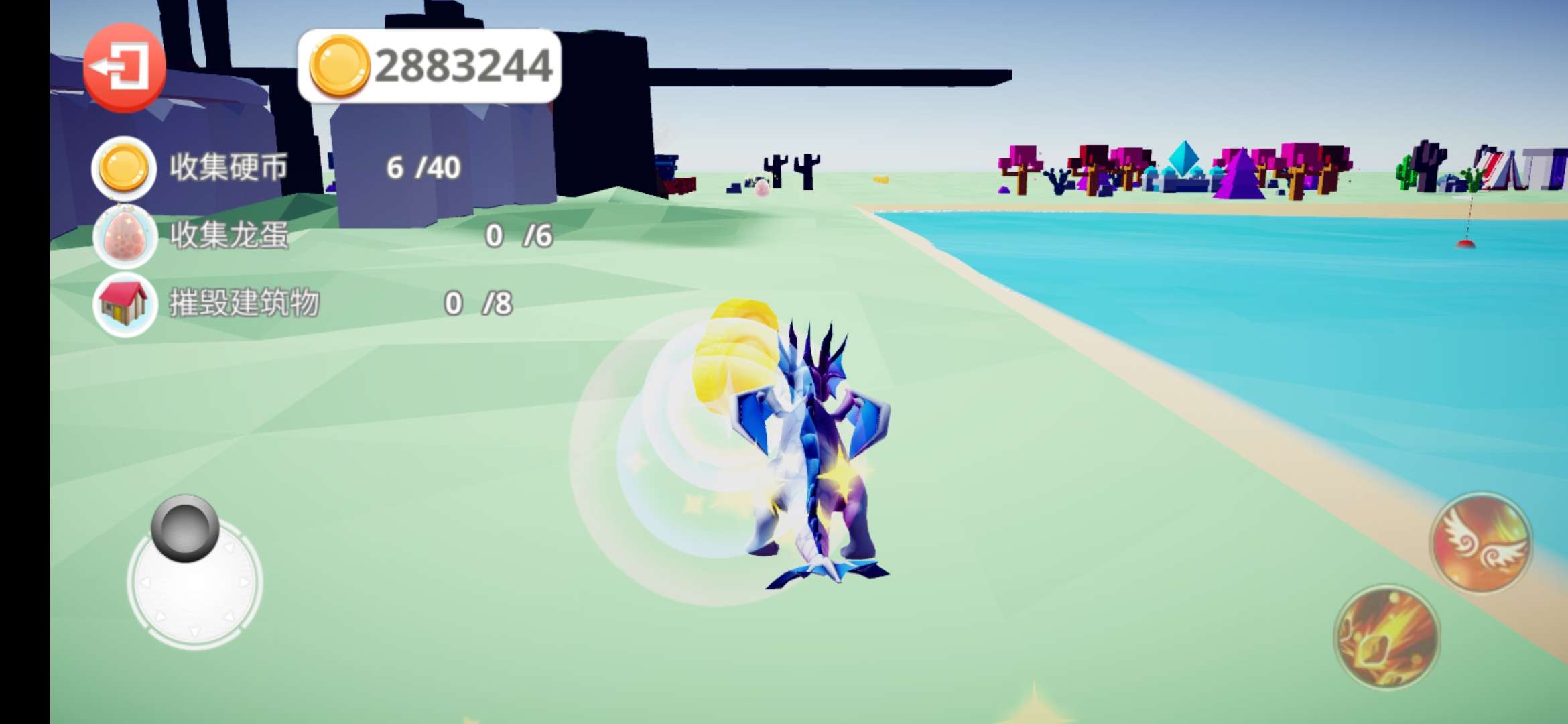 您扮演一只可爱,可爱,美丽的龙,必须四处走动。您必须收集硬币,砍伐树木和房屋,飞过岩石,在水中游泳。