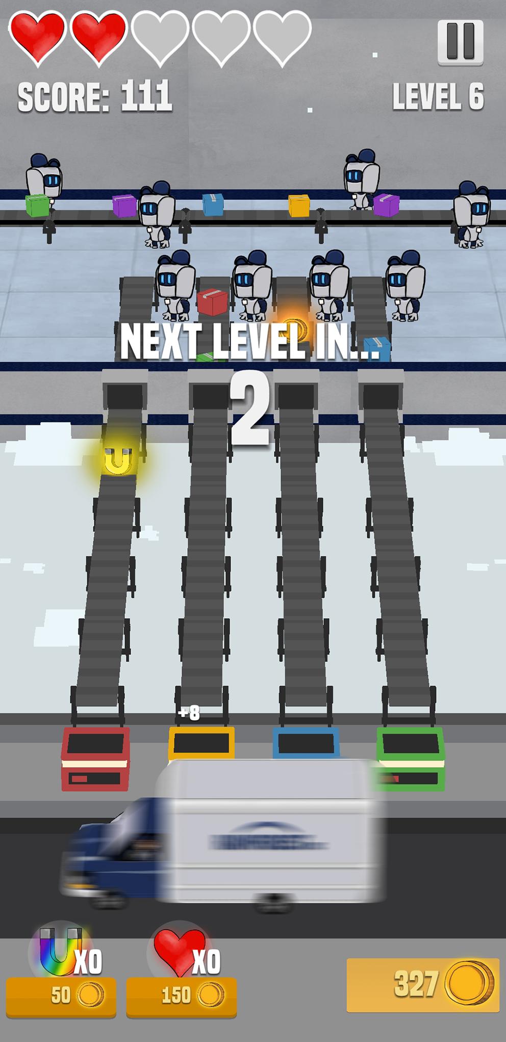 使用加电装置,取出损坏的包裹,并获得最高分,而不会失去自己的一生。