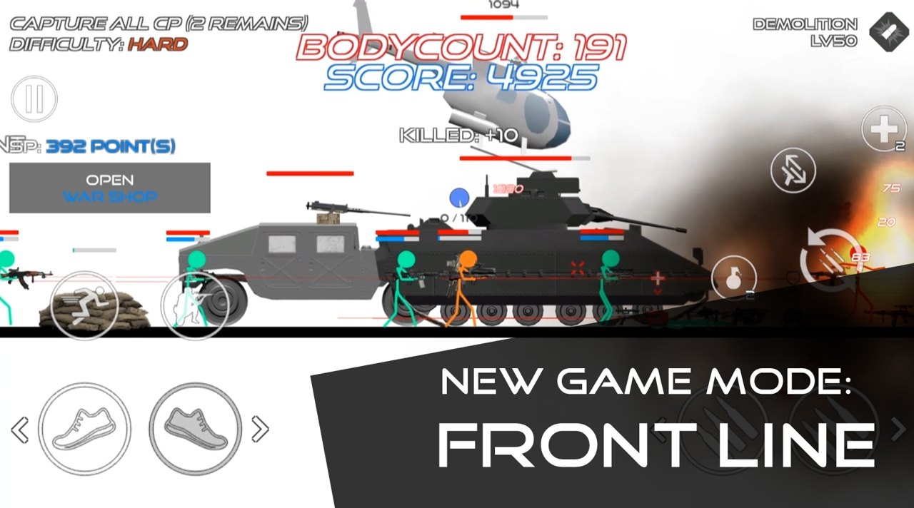 增加了前线游戏模式:与盟友战斗!呼叫武装直升机和装甲车!夺取所有控制点以取得胜利!