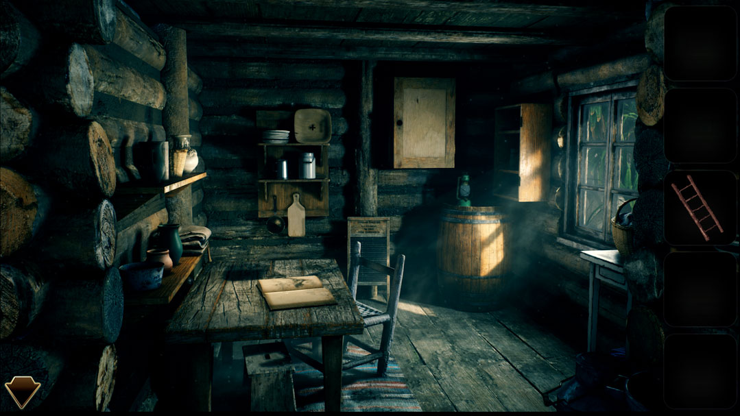 一个简单的游戏界面,包括您探索的世界和一个清单面板,您可以在其中收集,组合和使用在解决难题中发现的物品。