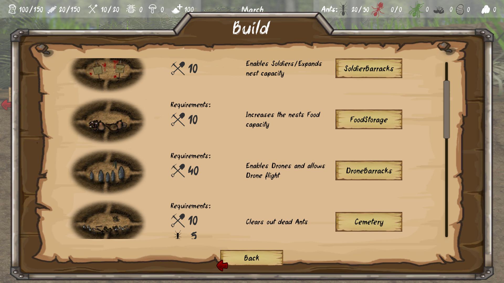 一开始蚁群只有几个工蚁和一只蚁后。你的目标是发展足够大的蚂蚁窝!