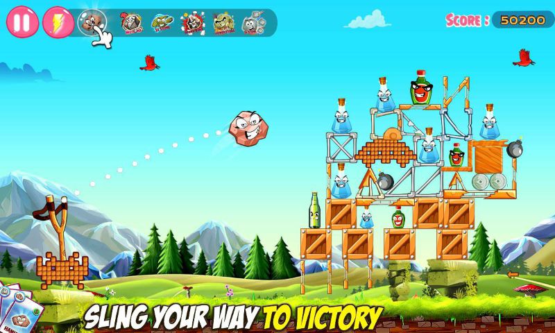你有几十个任务的淘汰与弹弓瓶。各自更趣味十足。只需瞄准和释放,以显示您的射箭技能。为使目标的射弹离你不远了。你是愤怒吊带射击,所以尽量赚取所有的三星级。