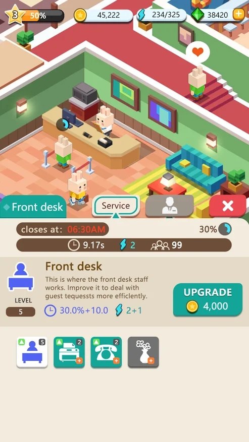 开始经营一家小型酒店,并努力使您的业务增长。改善每一个细节,并将您谦虚的装置转变为五星级度假胜地。
