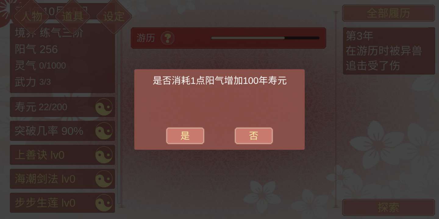 1,阳气值 ≥ 1时,使用阳气值增加寿元不减反加。2,使用已有灵草不会减少。(没有的草药不能使用)