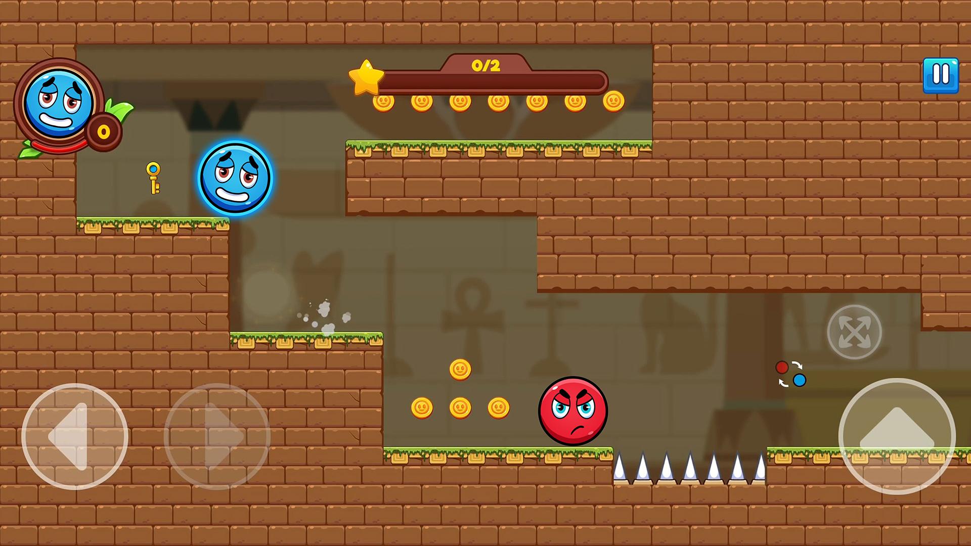 Red And Blue Ball 是一款令人上瘾的益智游戏,您必须在其中同步两个角色。同时控制两个球并使用按钮移动、推箱子和收集硬币到达金字塔的出口。