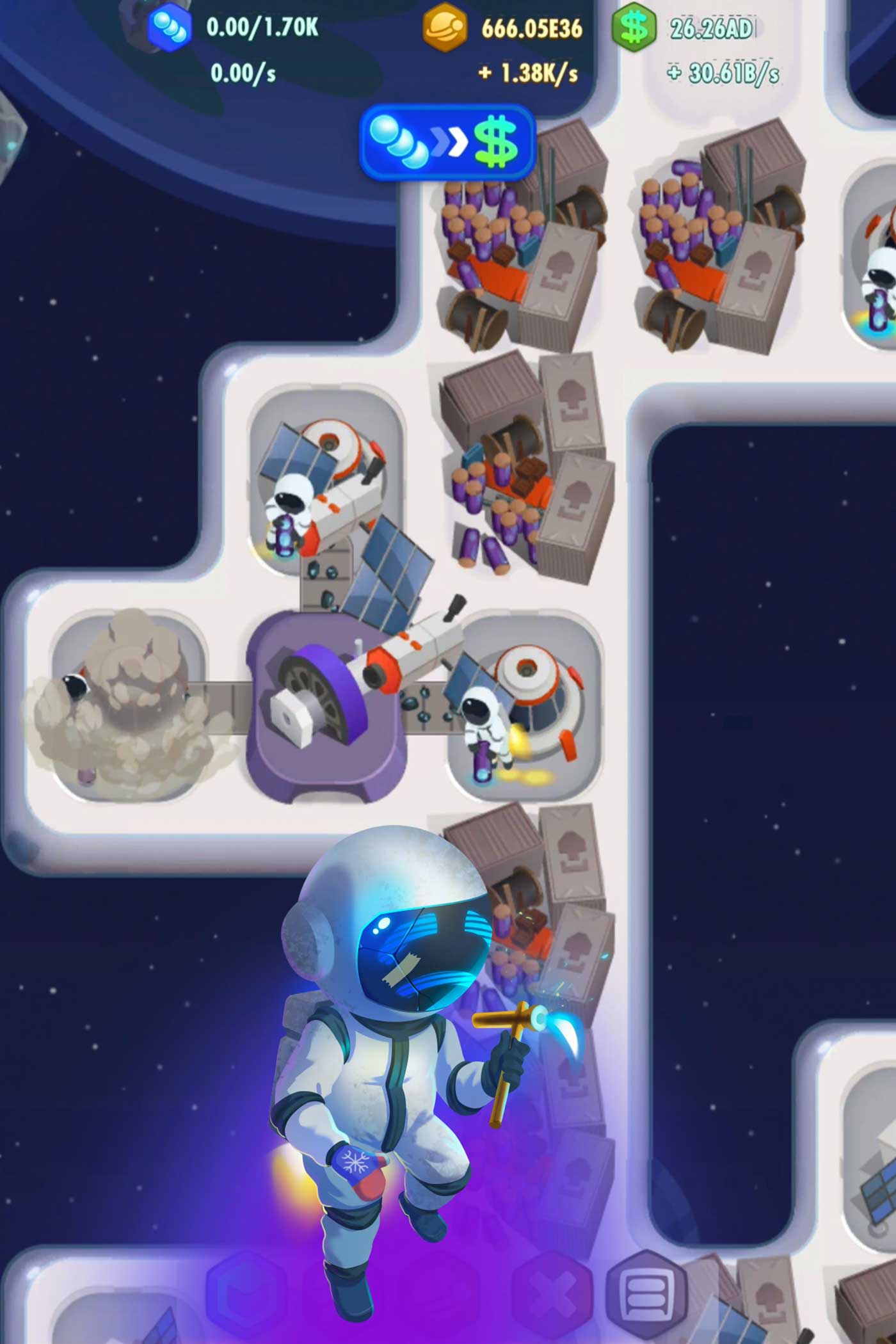 构建工业空间站,并在最容易上瘾的答题模拟游戏管理资源和能源成为空闲矿工大亨。围绕建设小行星的新建筑,升级你的太空殖民地,并继续挖掘飞船。管理你的恒星产业,培育企业和产生巨大的利润探索新的技术。获得能量,提高你的生产和观察你的空间闲置世界的演变。你甚至可以改变你的星球站的外观。