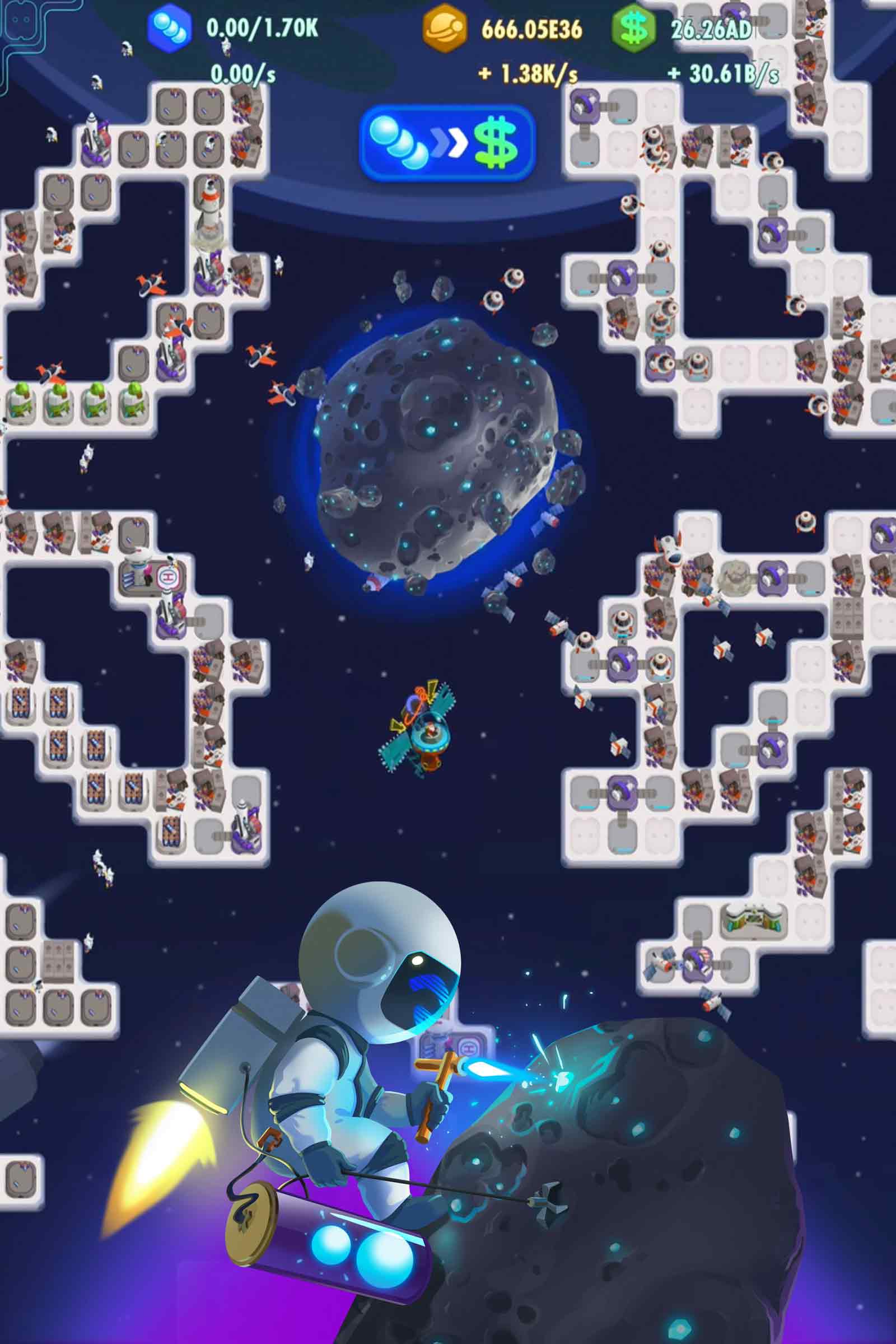 - 购买火箭和飞船矿石在小行星