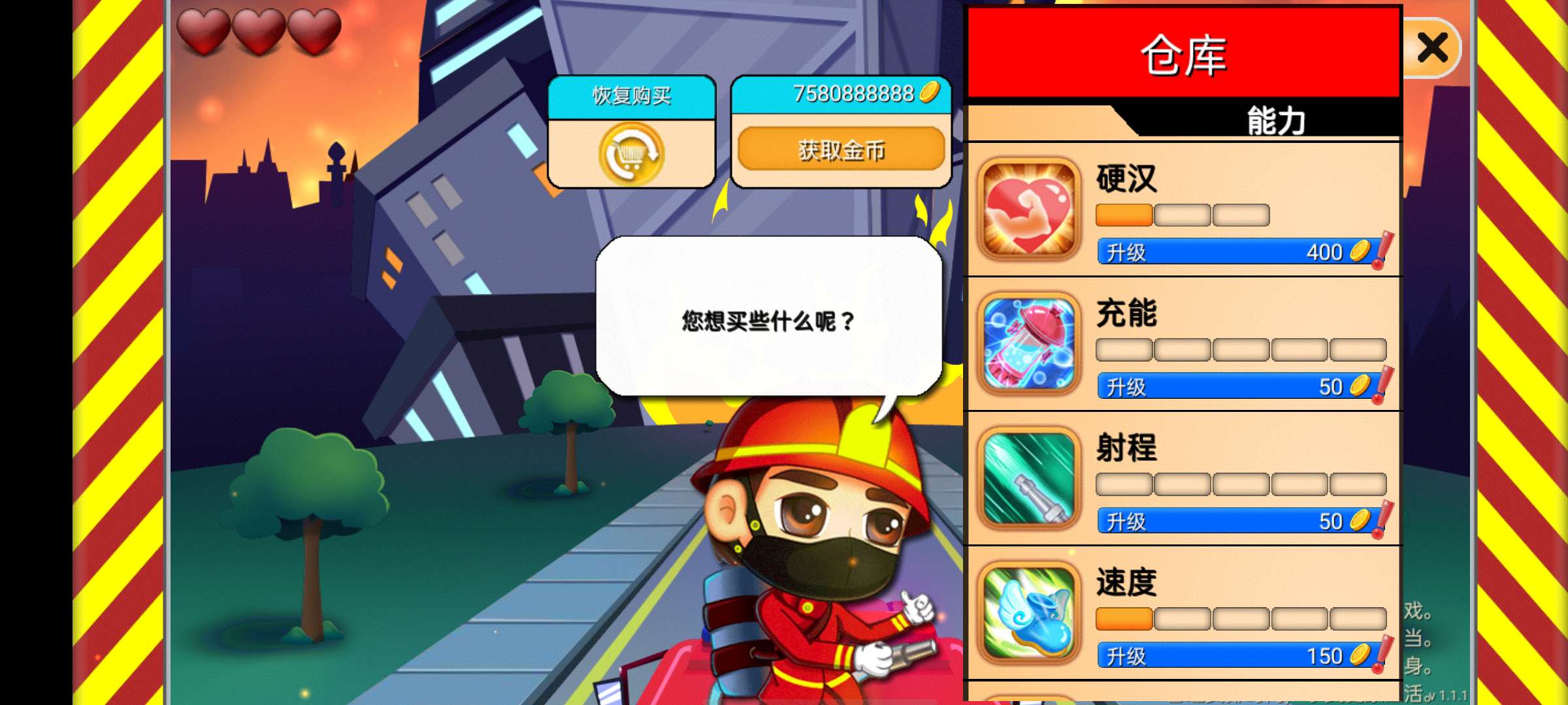 做一个勇敢的消防员,用消防水带灭火并拯救所有濒临灭绝的动物朋友。