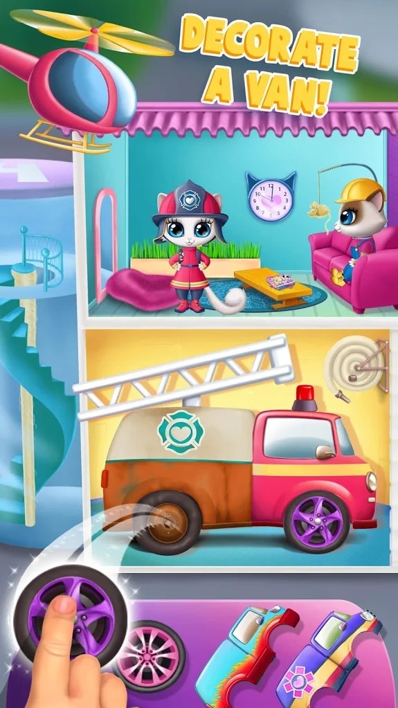 Play Kitty Meow Meow City Heroes儿童游戏和帮助猫英雄救援可爱的宠物! 宠物城的可爱和蓬松的公民正处于危险之中!一场大风暴摧毁了他们宁静的家乡!加入勇敢的猫消防员,警察,工程师和医生的超级英雄团队!拯救害怕的兔子,猫,浣熊和其他动物! 帮助猫消防队员解救被困动物朋友的愤怒火焰!喷水停止火灾,找到藏在房子周围的害怕动物,并用安全船捕捉它们。别忘了快速行动! 用蓬松的警察猫处理城市的混乱!帮助一个可爱的珠宝店老板找到一个小偷!把她珍贵的宝石和漂亮的钻石拿回来!找到线索和爪印,识别嫌疑人并找到坏人!记得要帮助无辜的动物! 水无处不在!