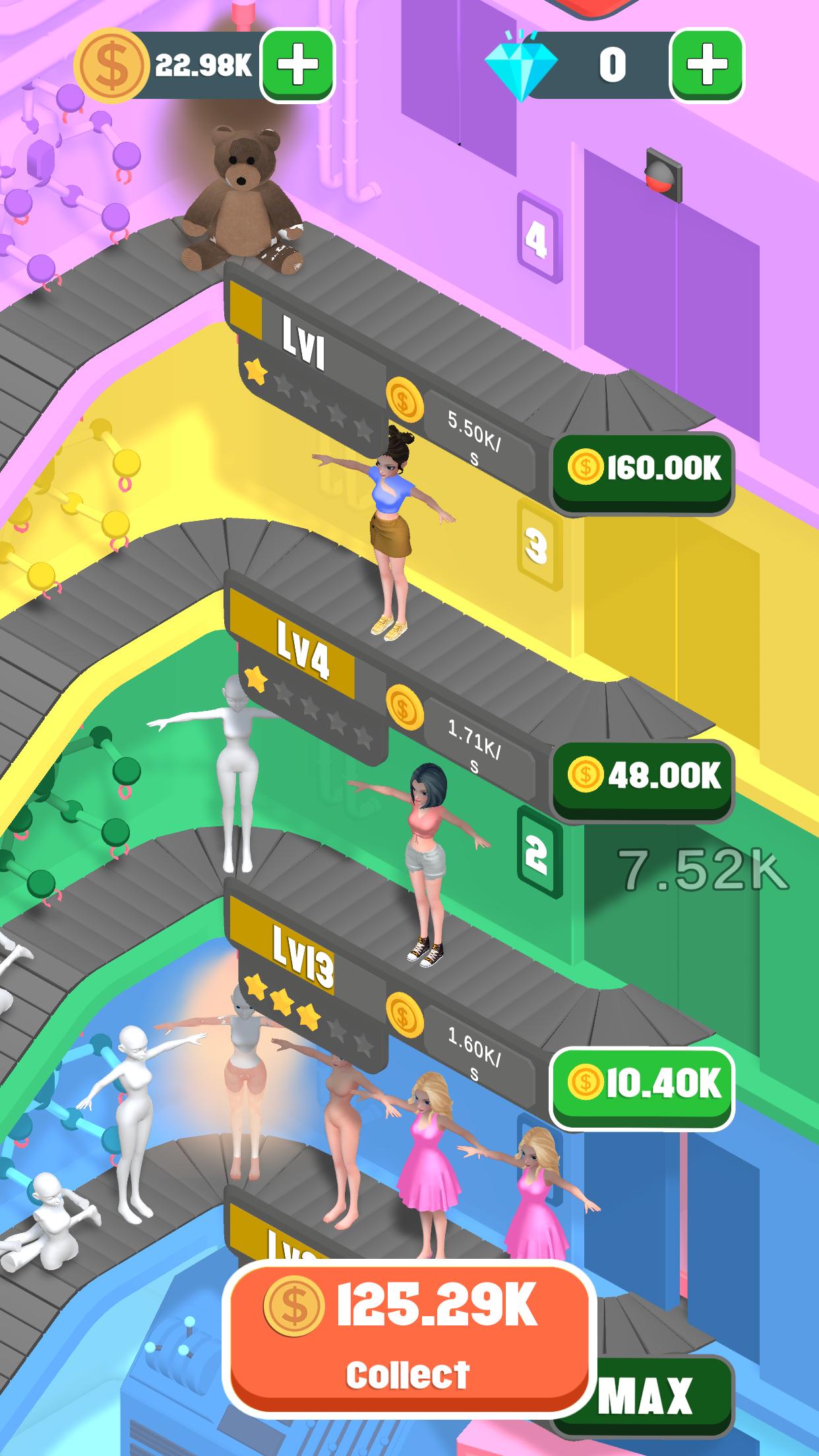 您拥有一家娃娃工厂,您需要快速生产待售商品。用赚来的钱快速扩大生产线。终于拥有了一个超大的工厂。