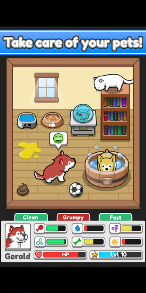 这是一个模拟器,您需要在这里照顾宠物,满足各种需求:例如食物、口渴、睡眠、洗澡、睡觉、散步和游戏。
