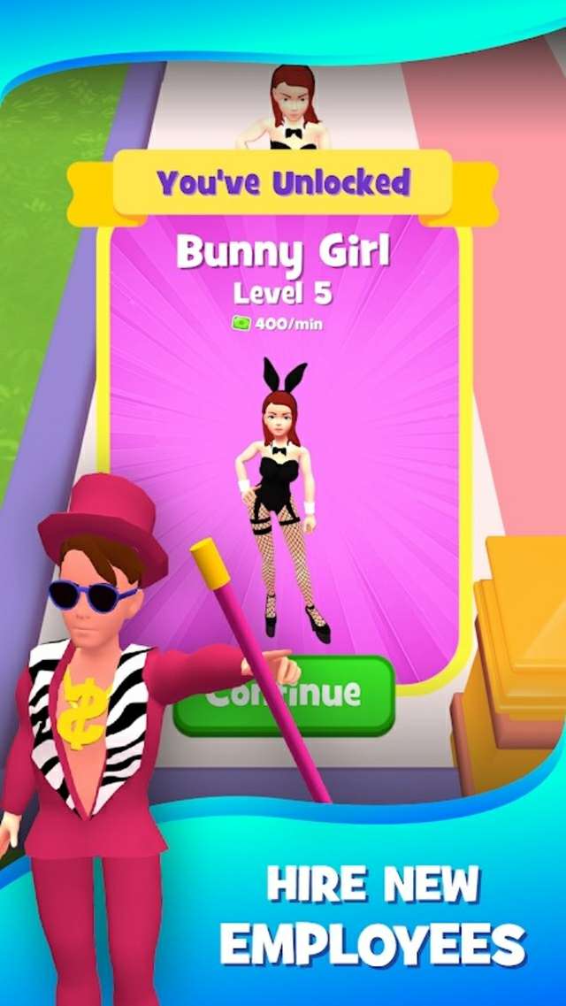 从一个小房间开始。在赚钱的同时开始美化您的豪宅,然后雇用新员工。豪宅需要酒吧、游泳池、舞池、雕像、卧室等等。建造新房间并招募更多员工。随着你对豪宅的改进,更多的顾客会来访,豪宅会赚到更多的钱。赚更多的钱,让豪宅更美,让顾客更开心!