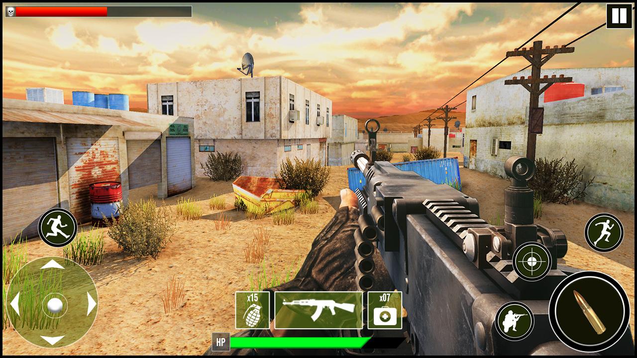 这是最好的第一人称射击动作游戏(fps游戏),你将有战争游戏任务。在反恐射击游戏中,你将有一个现代武器库。你将得到一个武器操作,这将是在打击任务中从操作控制中心启动。在这个真正的战斗游戏中,你的射击技能将在所有级别的射击游戏中得到测试。在这个第一人称射击游戏中,你将在地图上有不同的战争游戏场景。利用你的技能,作为一个突击队士兵对现代战争战斗突击的敌人强硬的士兵。你是突击队员,用火和枪为自己的荣誉而战。在枪战游戏中对抗恐怖分子的袭击。在这个第一人称射击游戏中杀死所有的敌人。在这个动作射击游戏中,你将使用你的士兵来攻击敌人的营地。瞄准和射击所有的对手。这个射击游戏是最好的军事射击游戏与生存战场射击免费。有伟大的军队战斗的最佳时机,采取指挥国家部队与单一的反击战打击。