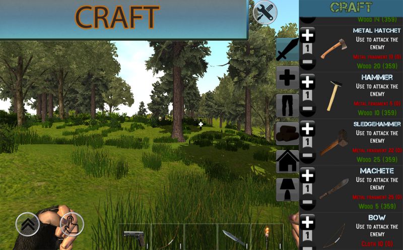 2、在这个森林和海边进行各种探索,狩猎,战斗,都是为了生存;