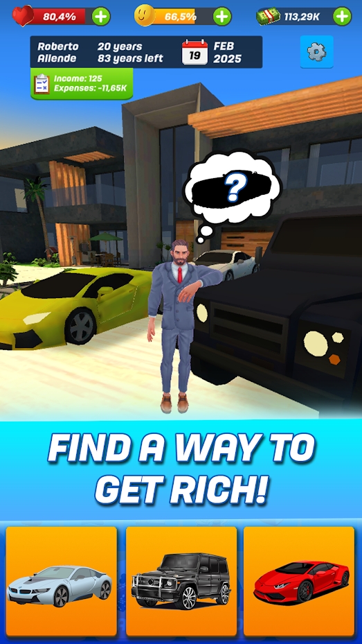 成为成功的商人后,您将必须像现实生活一样照顾好自己的人际关系和健康。请记住,所有超级亿万富翁都拥有大量金钱,有钱的朋友和疯狂的聚会,每个人都花费大量金钱,从而拥有成功的生活。这款生活模拟器或生活游戏将通过您的手机为您提供所有这些体验。从无家可归变成成功的商人真是太神奇了!