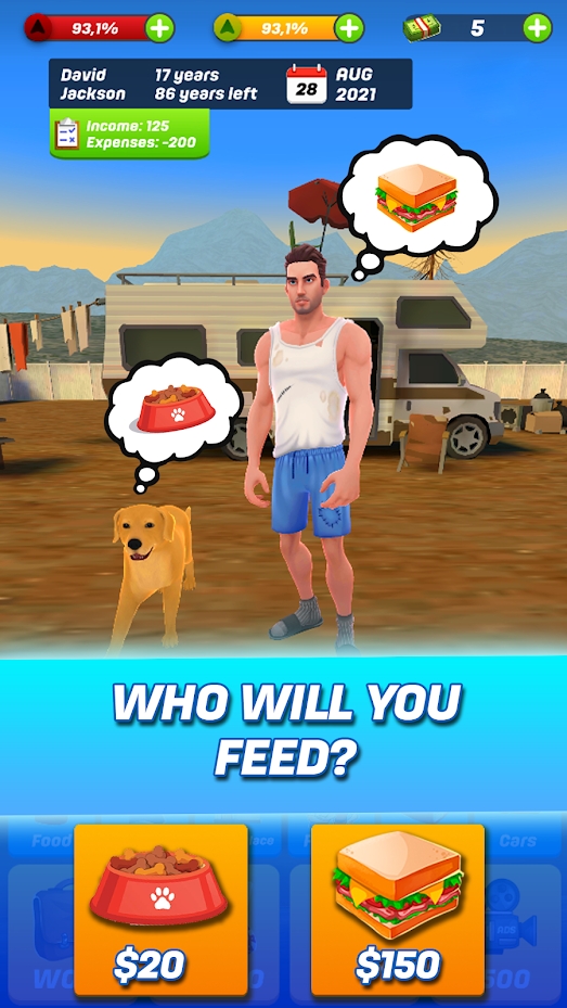 您将开始没有口袋里的钱,而像无家可归者一样住在一些公共卧室里,那么您将不得不在这个生活模拟器游戏中做出一些决定,才能赚到足够的钱来建立自己的第一家公司。每天在您的业务中努力工作,成功将是您生活的一部分,您将成为富有的商人,您将有足够的钱来增加利润,投资于股票市场等其他业务或创建典当行等新业务。