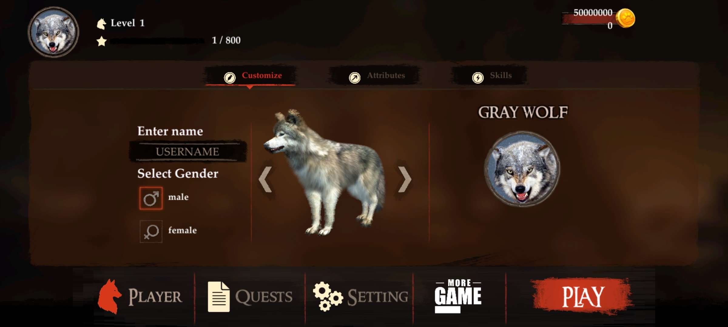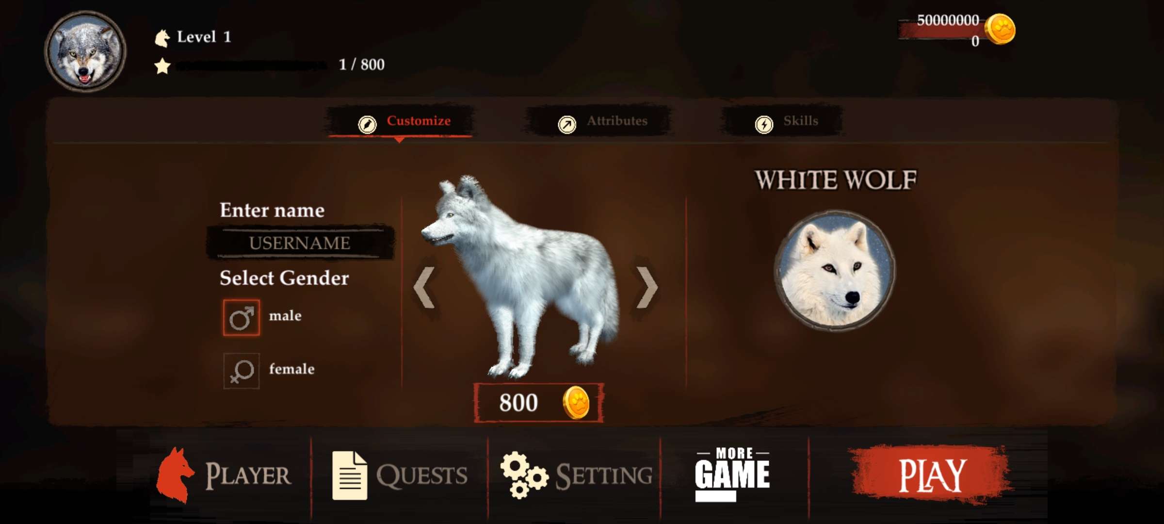 你是自己命运的主宰!在这个模拟游戏中,没有强加的道路可走。在这个模拟器中,没有强加的路径可以遵循。决定发展哪些属性,升级哪些技能,以成为狼群中的阿尔法!