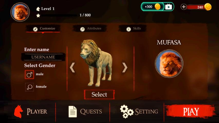 欢迎来到森林的荒野。有一个狮子在这片土地上生活,狩猎和生存。扮演狮子,探索森林的旷野