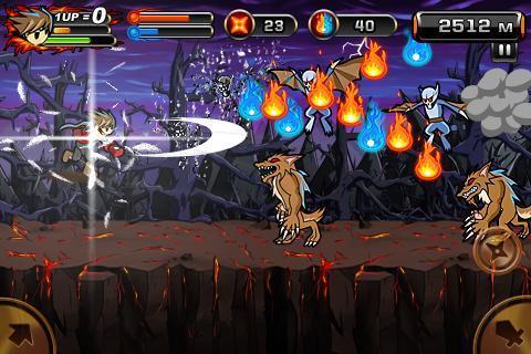 相比前作游戏风格更加炫酷,红与黑搭配的经典背景下,我们的主角依旧要用风一般的速度击垮一切敌人!怪物的种类没有发生太大变化,还是以狼人、蝙蝠怪物等多种邪灵为主,屏幕右下方的虚拟按键为进攻按钮,轻轻一按角色就会发出威力极大的红色光波,敌人碰到便会粉身碎骨!屏幕左下方的是跳跃键,一次为单跳,快速按两次为连跳。