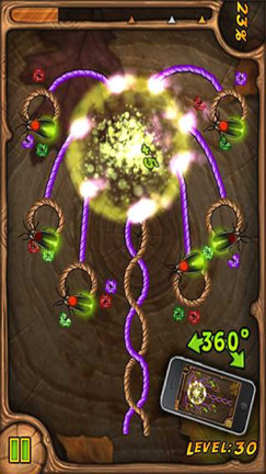 《烧绳子 Burn The Rope+》是一个具有挑战性的游戏,以简单却又充满了有趣要素的画面,加上轻松愉快的音乐,带领玩家进入到一个充满了燃烧的火焰、各种不同的绳子及昆虫的世界当中。游戏里你需要选择一个位置点火,然后利用重力感应引导火苗移动,烧着的绳子越多,得分也就越高。游戏中会出现各种颜色的小昆虫和绳子,一旦小火苗烧掉一个虫子,就会染上虫子的颜色,并且附带上各种游戏的效果,这些效果可能是加速,也可能是不易熄灭等等。但是要注意的是,带有颜色的绳子是需要对应颜色的火焰才能烧着。按照燃烧的绳子占整体的百分比,游戏会做出相应的评分,一旦超过60%被烧掉,那么就是一个铜牌且可以进入下一关,80%为银牌,100%就是金牌了。每日联网都可以获取全新的一个游戏关卡,让游戏每天都有不同的百变乐趣。