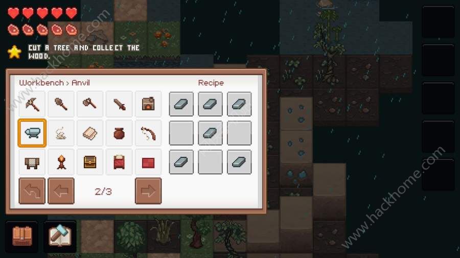 从游戏的名字当中不难看出,游戏采用的是复古的像素风格的画面设计,从刚进入游戏的时候主界面简易的设计就在告诉着玩家,只需要开始游戏就可以了,其他的并没有什么多余花哨的元素,不过简易的UI设计可并不代表游戏中的元素就很少,游戏中玩家一共可以打造超过100种不同的物品,种类也是多种多样的,有生产工具、食物、材料等等,而且游戏中的天气系统也是非常逼真的,除了常规的日夜交替之外,天气效果也是随机出现的,可能刚刚还是大晴天的转眼之间就阴雨绵绵了,而天气系统在游戏中除了在画面效果上得到体现之外,也会有一些更为实际的作用。