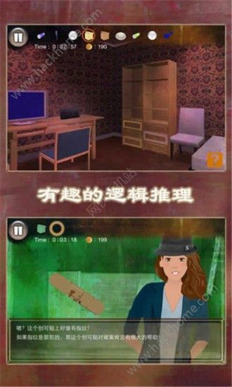 Sarah集美貌与智慧于一身,是警察们的救世主,现代的福尔摩斯。某一日,在一间神秘的密室里,发生了一件离奇杀人案。警察们一时没有线索,请Sarah来协助破解这宗离奇的密室杀人案件。让我们行动起来,寻找线索,仔细推敲,在神秘的密室里破解这宗离奇的杀人案件吧。