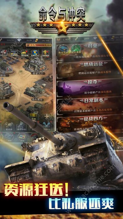 《命令与冲突》 游戏以二战为背景,汇聚了众多历史著名坦克,重现了二战时期的坦克集群战争。精美的游戏画面,震撼的技能打击和全面的战斗音效,为玩家塑造出一个真实的战场,在这里玩家将化身为一名战场指挥官,虎式、豹式、谢尔曼数百种战车组建属于自己的装甲军团,更可以通过层层任务及历史事件的考验,重温二战历史文化。