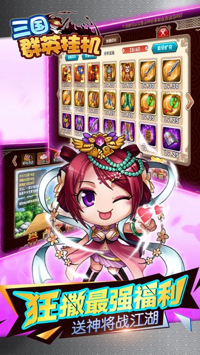 《三国群英挂机》是一款第二代卡牌挂机类游戏,颠覆重度卡牌手游的重复操作,让你想玩的时候有内容玩,想休息的时候不用操碎心。
