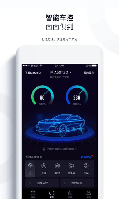 全面展示荣威MARVEL的官方平台,荣威MARVEL的官网用户交流平台,在这里您可以获取荣威MARVEL的官方产品资讯,提供智联网汽车车主服务软件,车辆控制、智能钥匙、车辆状态查询、P2P自主泊车、私桩充电等