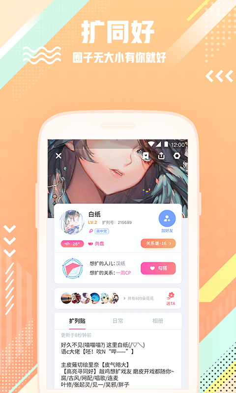 勾搭同好、扩关深交、招募认亲、对戏邀剧、接单绑定、拜师收徒、扩圈面基…统统可以!