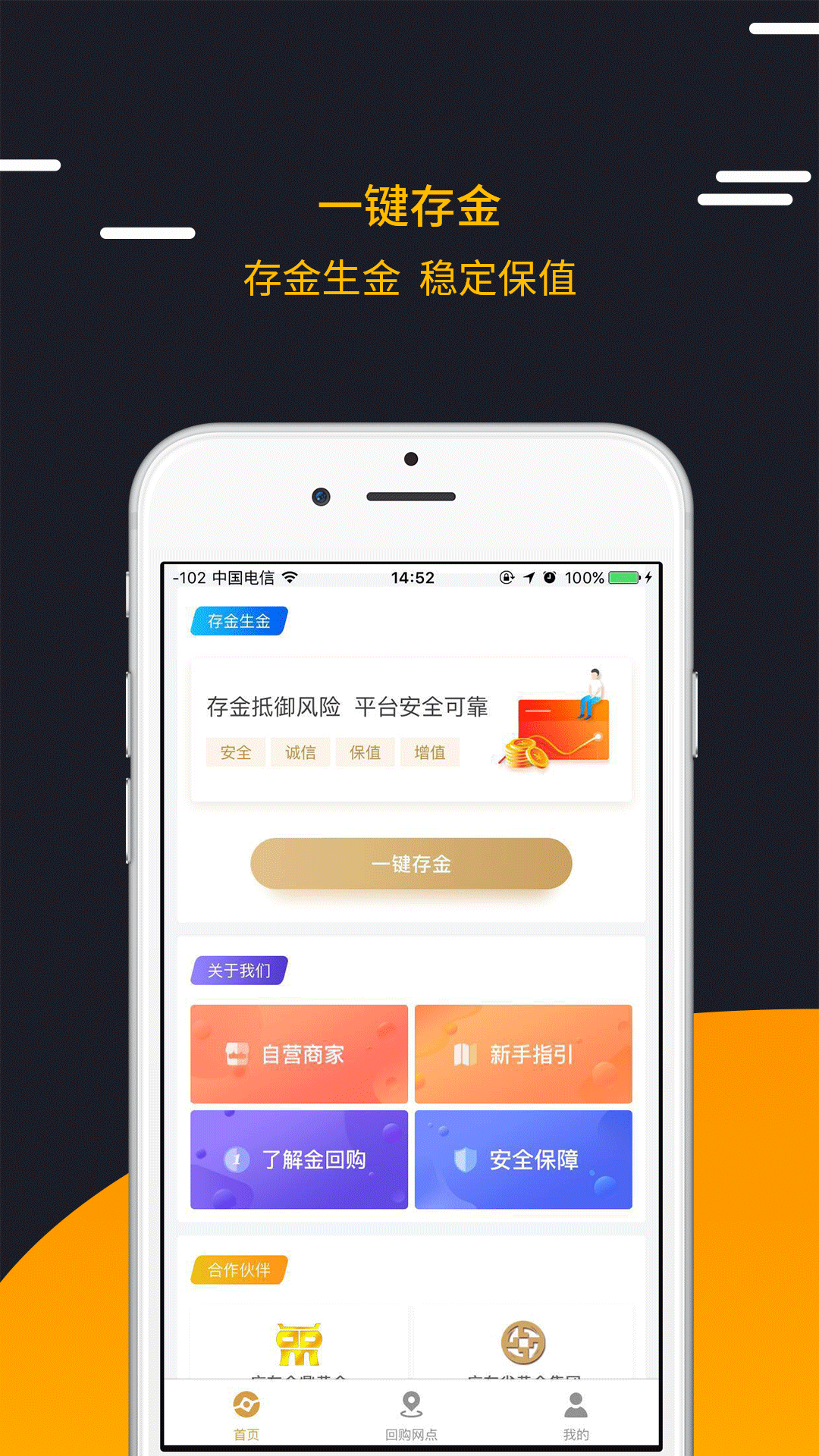 “金回购”是国内率先推出的黄金回购平台,运营主体深圳市恒富盈家黄金有限公司,持有上海黄金交易所综合类会员资格(目前我国合法的黄金交易所,其中国内金融类、综合类仅165家)(会员编码:0273)。目前恒富盈家与广东省黄金集团公司(国企)开展合作连锁加盟代理,以及广西黄金开展实物黄金代理销售业务。金回购主要为用户提供旧金回购、黄金存管等服务。通过金回购的App随时随地卖金存金,在您持有黄金期间既可以享受金价上涨带来的增值,又可以获得存储黄金带来的金息。