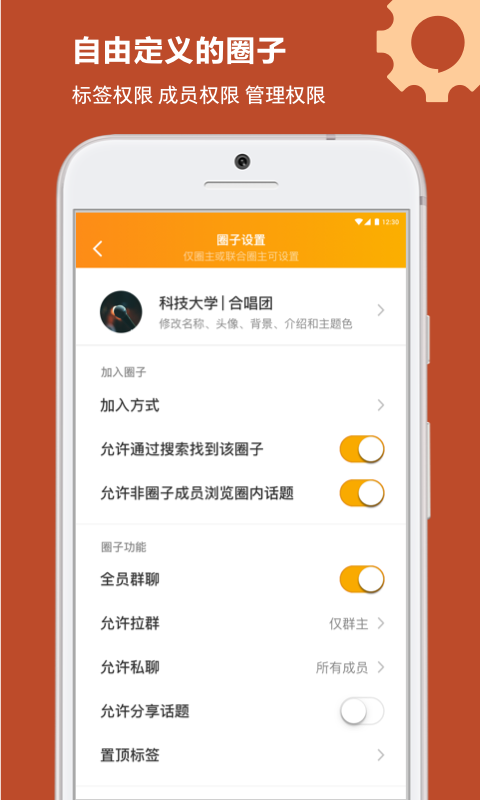 禁止搜索:禁止圈子被搜索,营造绝密空间。