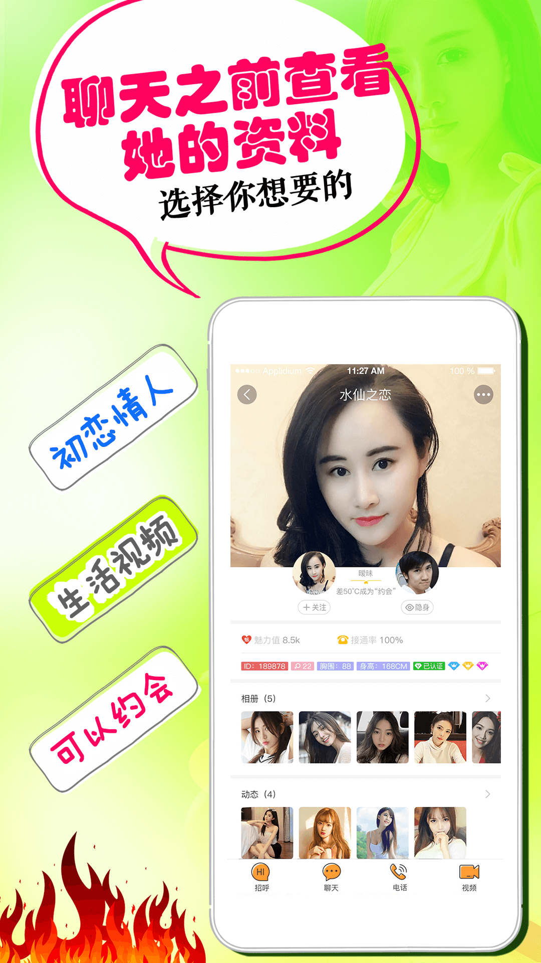 - 文字、语音一起嗨聊 发现喜欢的帅哥美女,除了1对1聊天外,可以发起文字和语音等多种方式聊天