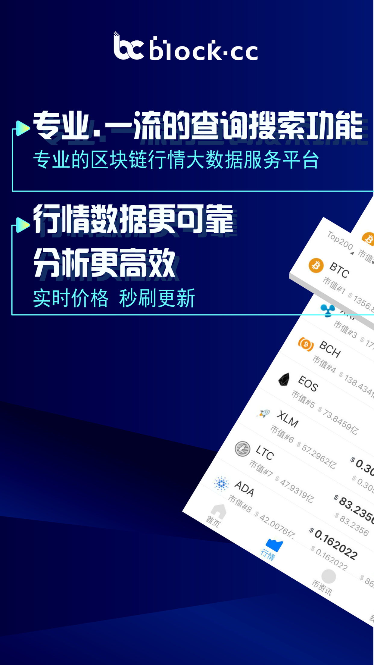 BlockCC 致力于打造区块链新币大数据平台,支持298家交易所行情, 3387个币种查询,34家交易所的K线数据,并凭借数据的可靠、及时、全面,一举跻身行业领先地位。