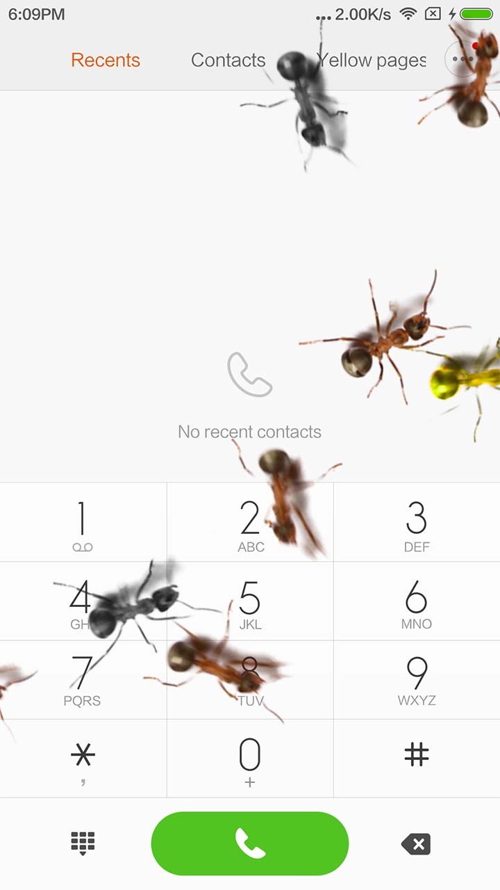 蚂蚁将会显示在您手机上,逼真爬行效果,达到与好友恶作剧的效果。