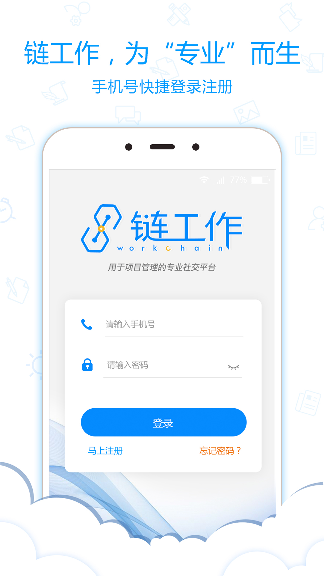 链工作-用于项目(事项)管理的专业社交软件,一个软件集合八大联动功能模块:成员管理模块, 权限管理模块, 成员沟通模块,项目信息管理模块,项目进度更新模块, 日志管理模块,人才检索模块、知识分享模块。八大模块环环相扣,以项目为核心,多方协作,提高项目管理水平;为业主、设计师、建造师等自由职业提供可能。