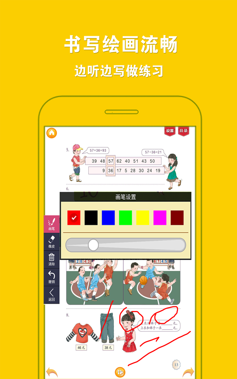 【3】书写绘画很强大,边听边写做练习。书写笔迹自动保留,体验如纸质课本。