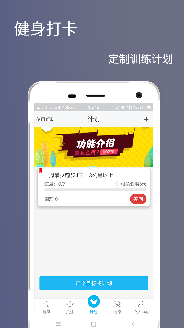 健身打卡是一个可以帮你克服种种困难,助你达成你目标养成好习惯、专注学习成长的手机APP。