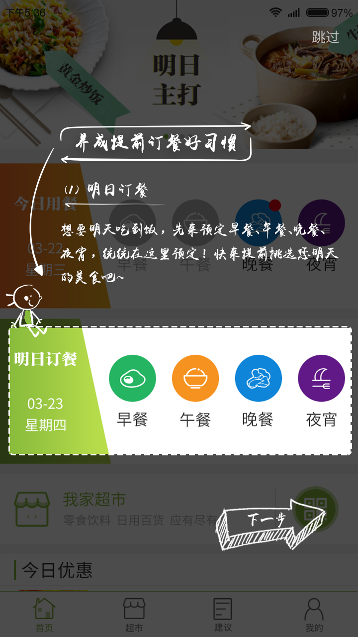 提前预定明日菜品,选择自己喜欢的菜品,享受提前订购的优惠折扣。