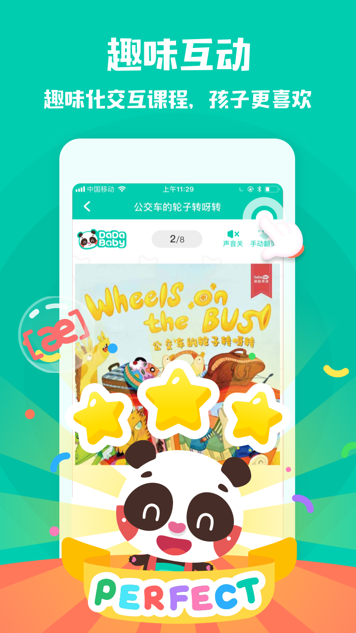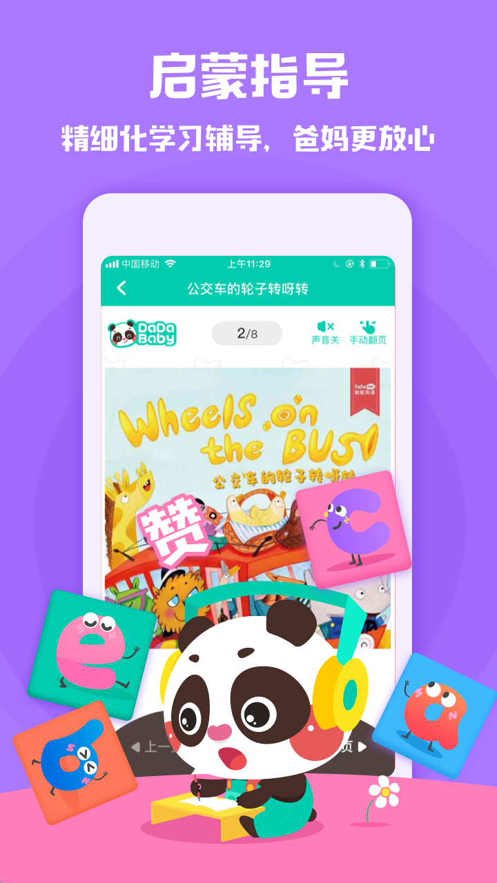 DaDaBaby 是 DaDa(DaDa英语)旗下专注服务于 0~6 岁家庭英语启蒙教育的子品牌。由国际化师资团队为中国家庭打造的专业、系统、多元化英语启蒙课程,让孩子从小开口说英语!