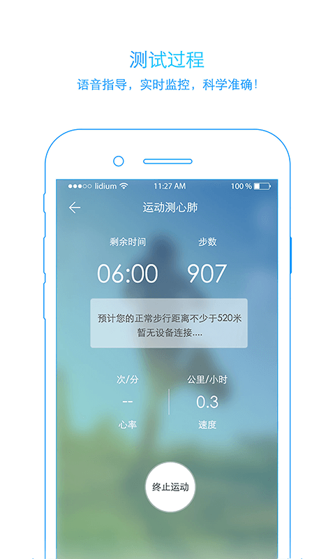 采集您的运动、生理参数,实时反馈运动强度、速度、距离、靶心率与运动处方相符,随时语音提醒让心脏康复无忧!