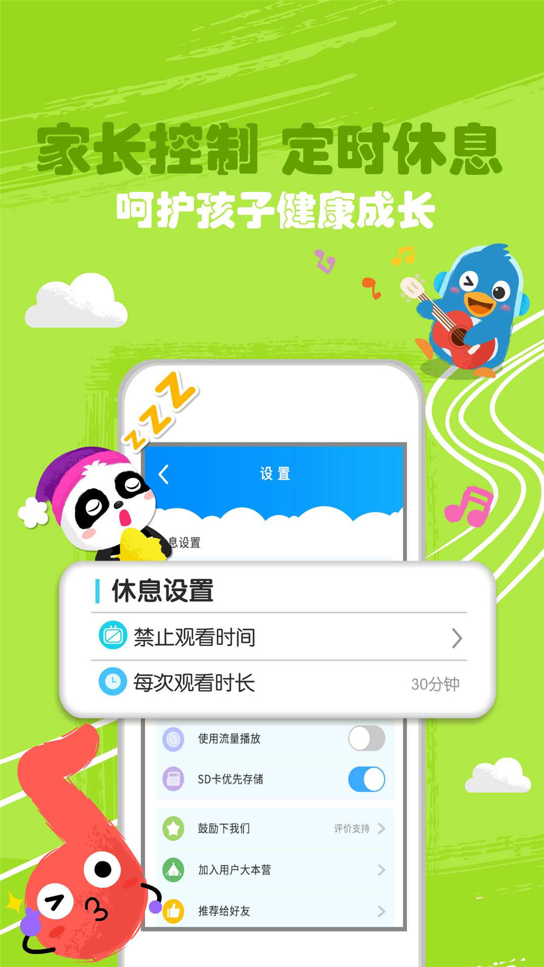 护眼提示,限制孩子观看时长;