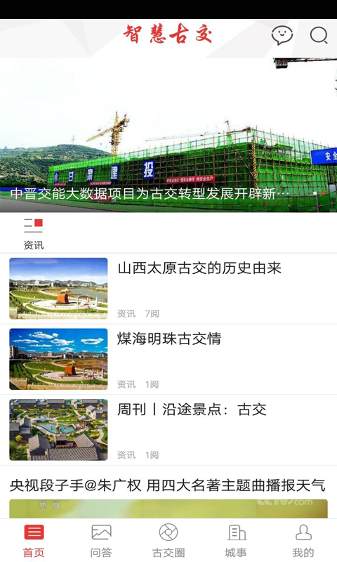 古交市是一座美丽的山城,这里有金牛拉山的动人传说,这里有旧石器时代人类活动遗址群,这里是三晋名臣春秋时期晋国大夫狐突的故里,山西忠文化发祥地之一,这里更是晋绥八分区所在地,这里人杰地灵,物华天宝。《智慧古交》是古交市广播电视台全力打造的一个集发布、传播运营、互动服务等多种功能为一体的手机运营平台。它秉承“一掌通天下”的理念,以宣传古交、展示古交魅力为宗旨,以更方便、更快捷、更智能的方式,为您提供最新最快的资讯。《智慧古交》将成为您了解古交变化、利民便民的又一新型媒体,打开《智慧古交》精彩与您同行。
