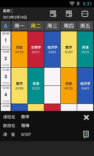 便利课程表是简单、方便的课程表应用程序。 直观的界面让课程表内容一目了然。 通过便利课程表,设计您的学校生活吧! ★ Features ★ ? 用着方便的直观界面 ? 可简单确认各课时的上课时间 ? 提供各课程的小记录功能 ? 可以储存各课程的作业、考试日程 ? 通过区分A/B周,可以编制两种课程表 ? 可以不受限制指定星期和课时范围