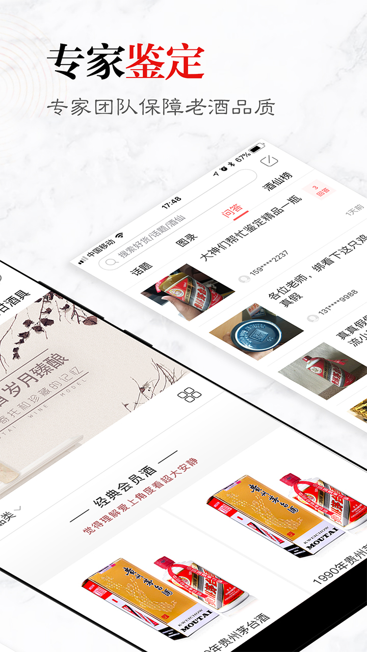 · 茅台酒鉴定专家:茅友公社有着专业的鉴定专家团队,通过鉴定专家的答疑解惑,活跃茅友的分享,丰富内容的问答,为用户提供一个专业的茅台酒鉴定平台。
